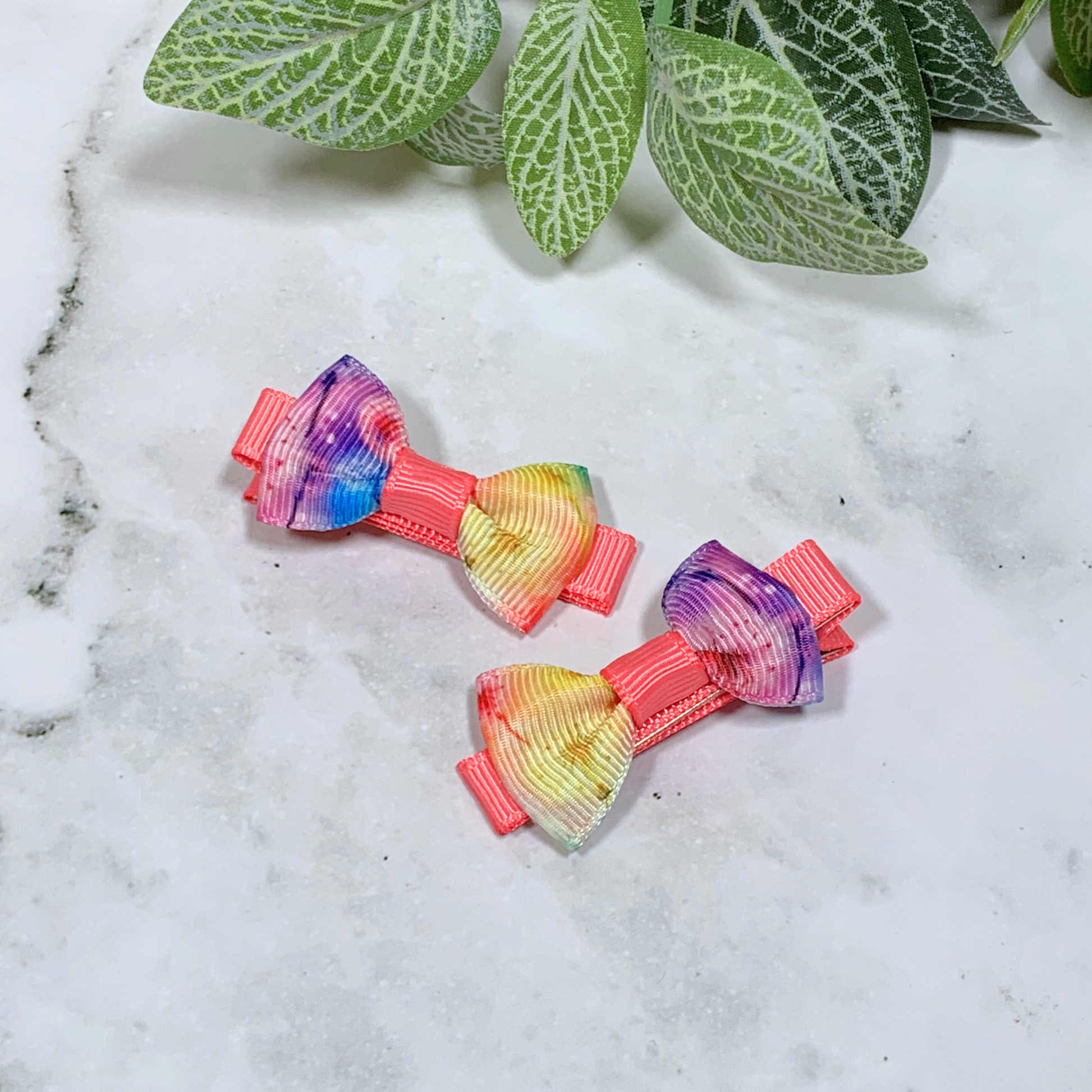 Coral Dandelion Mini Bow Hair Clips - set of 2