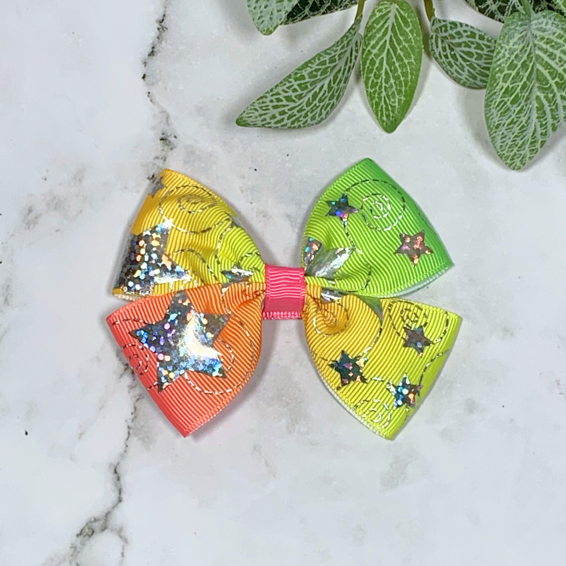 Rainbow Ombre with Silver Stars Medium Bow Hair Clip